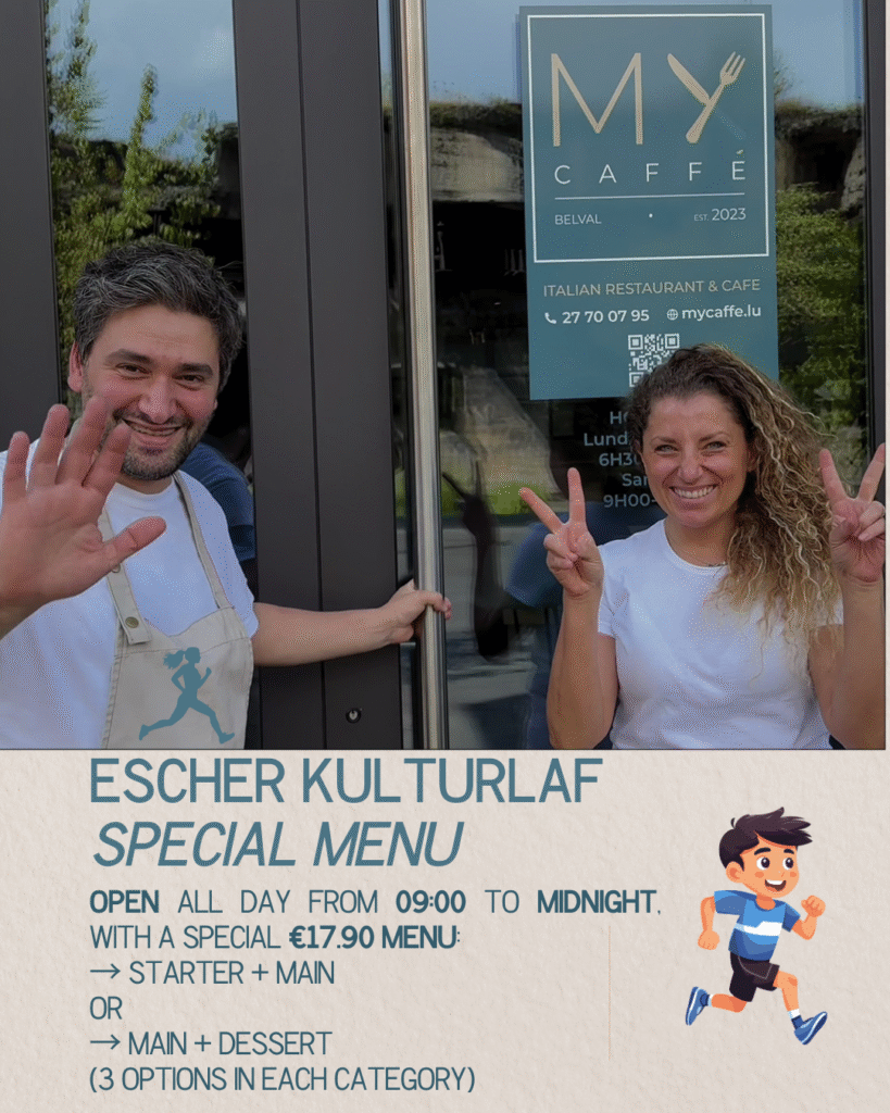 This Saturday 6 September, Belval transforms into a vibrant stage for the Escher Kulturlaf – a celebration of movement, community, and joy. And nestled in the heart of it all, MyCaffé invites you to take part in a different kind of celebration: the one that happens around the table.